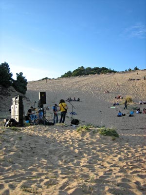 Now here I was, sitting on a dune, about a mile from the coast, listening to the vaguely South-Asian colourings in the musical excursions of the German three-piece Colour Haze. Seeing the audience dotted all over this natural amphitheatre made of sand, I couldn't help but be reminded of that mass sex scene in Zabriskie Point with Jerry Garcia's dreamy noodling in the background. It was just like that, minus the sex. And there was absolutely nothing wrong with it (the noodling, that is).