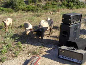 X had been right, of course. There was nothing to be afraid of. Sardinians seem to be very open-minded, and by the time Tom, the fearless Texan took the stage, the mood was already relaxed, the Festa Patronale successfully hi-jacked by DUNAjam or PRICKLYpeaBOWLS or whatever you want to call it. Only after the third encore, when Wasted Pido, the Bakunin of Psychobilly, started his late set, the town soundman mercilessly cut him off, because Pido had banged his precious mic rhythmically with his forehead for